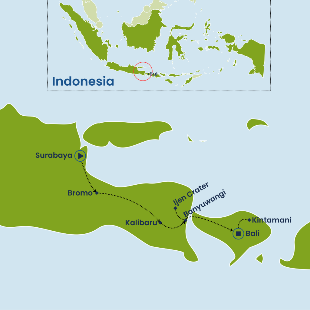After breakfast, enjoy some free time to relax before being transferred to the airport for your onward flight. Take with you memories of East Java’s volcanoes and Bali’s cultural wonders.