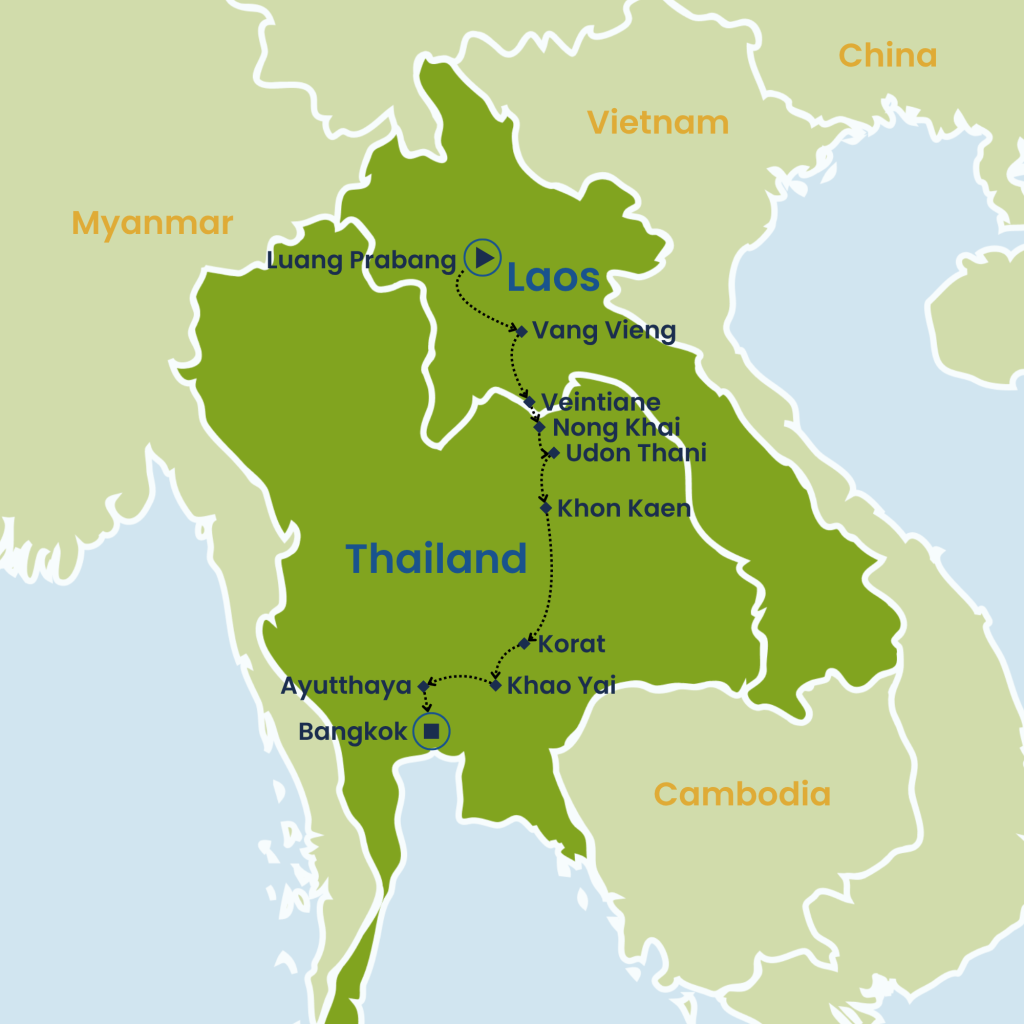 Explore the heart of Laos and Thailand on this 13-day journey from the tranquil streets of Luang Prabang to the vibrant pulse of Bangkok. Discover UNESCO sites, ancient temples, and breathtaking natural landscapes, including the stunning Red Lotus Sea, Phimai Historical Park, and the historic city of Ayutthaya. Delight in local culture as you stroll through lively markets, cruise along the Mekong and Chao Phraya rivers, and visit unique spots from serene Hmong villages to bustling Bangkok, blending tradition, spirituality, and scenic beauty at every turn.